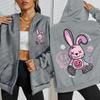 Cute Tags Cartoon Footprints Rabbit Print Women Zipper Hoody Hoodies Autumn Casual Zip-Up Clothes Pocket Hoodie