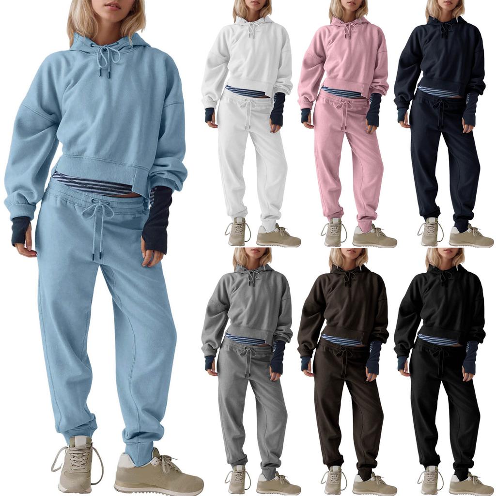Women's Fashion Solid Color Hooded Sweatshirt And Sweatpants Two-Piece Casual Set