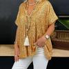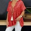 Fashion Short Sleeved V-neck Sequined Women T-shirt Casual Loose Pullover Top Elegant Plus Size Simple Office Shirts Women's Clothing