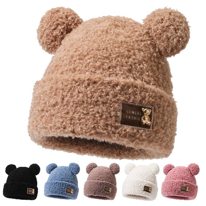 Bear Plush Hat for Women In Autumn and Winter Pullover Cute Hat Plus Velvet Thickened Confinement Period Warm Cold Ear Protection Cold Hat