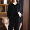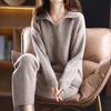 Casual Knitted 2 Piece Sets Korean Polo Neck Sweater Pullover Conjuntos Women High Waist Ankle Length Malhas Harem Pant