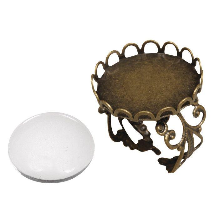 Chaton métal, Bague av. Bord déco,2cm, avec cabochon, 1set, or ancien