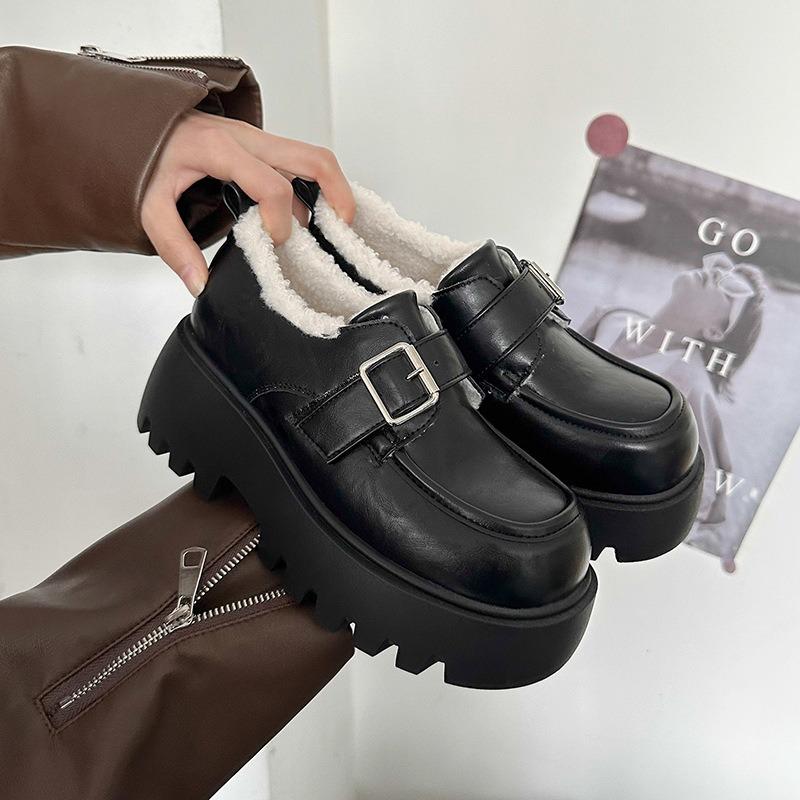 Autumn and winter Maillard thick-soled velvet warm women's small leather shoes lazy cotton shoes women