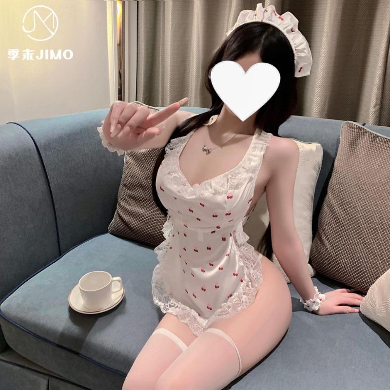 Sexy lingerie cherry little maid pure lust sexy cherry print lace maid private room strap bow