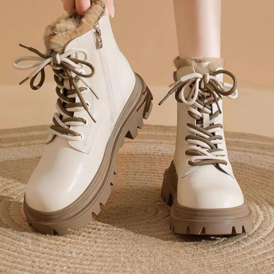 British Style Lace-up Thick Bottom Ankle Boots Women Fashion Round Toe Platform Boots Comfortable Winter Warm Designer Boots