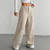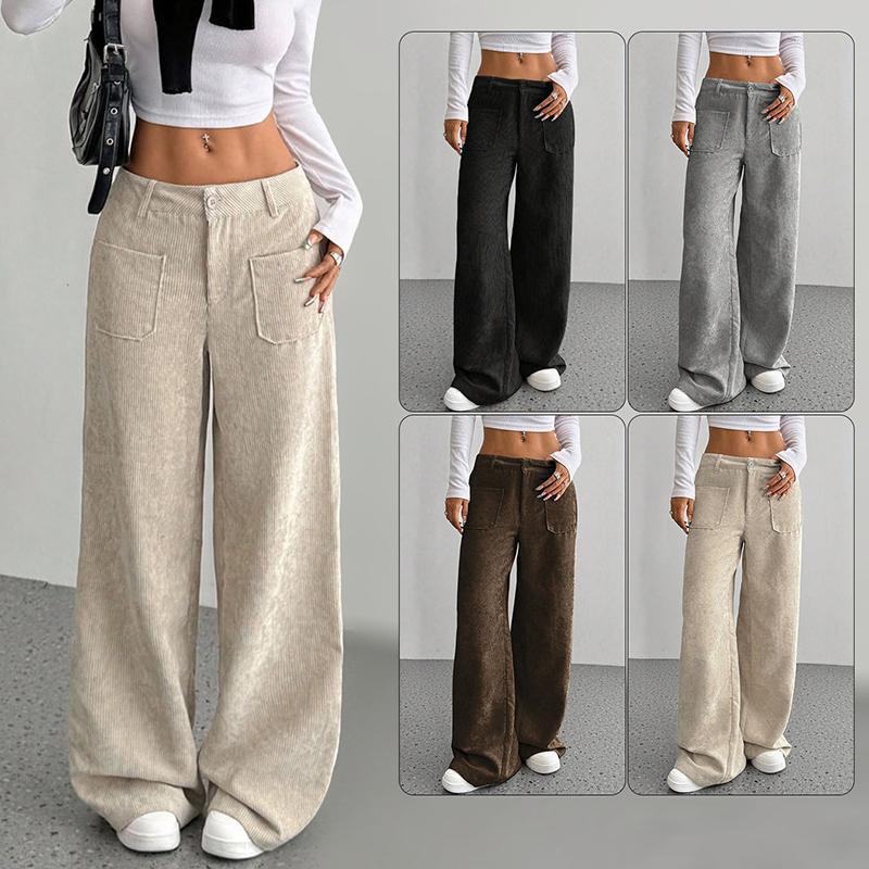 Dámské podzimní zimní ležérní jednobarevné kapsy s vysokým pasem manšestrové kalhoty s rovnými nohavicemi