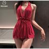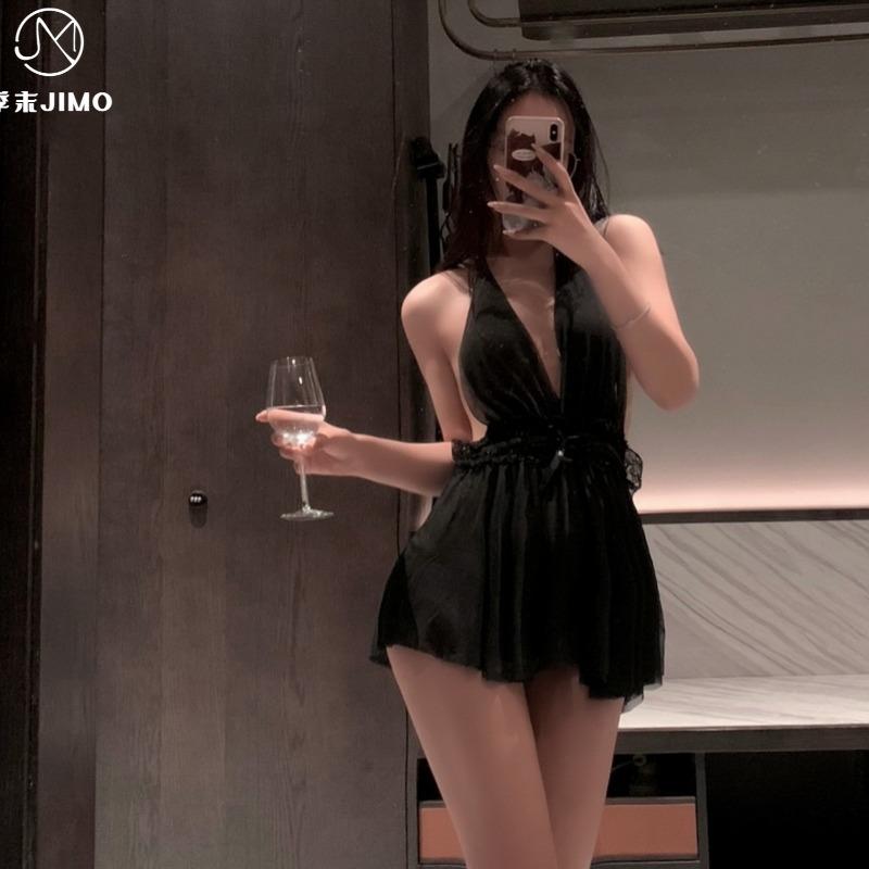 Sex underwear deep V sexy backless double-layer mesh perspective temptation neck loungewear