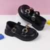 2024 Spring New Girls Leather Shoes Round Toe British Style Retro Metal Buckle Soft Kids Fashion Princess Loafers Shallow Causal