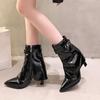 Cowboy Women Ankle Boots Pointed Toe Fashion High Heels Shoes 2025 New Trend Designer Buckle Pumps Chelsea Winter Botas De Mujer