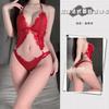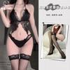 Erotic underwear confuses the heart, ultra-thin and empty lace jumpsuit bra set, hot temptation deep V
