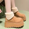 Kozačky dámské na platformě kožešinové kotníkové semišové krátké plyšové střední podpatky bavlněné boty 2025 trend teplé ležérní zimní nové boty pro ženy