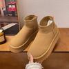 Platform Suede Flats Ankle Snow Boots Women Warm Plush Cotton Mid Heels Shoes Brand Winter Fad Trend Cozy Chelsea Botas Mujer