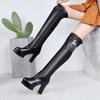 Zimní Mikrovlákno Moderní Kozačky Nad Koleno Čtvercový Podpatek 2024 Značková Obuv Dámská Krátký Plyš Zip Špičatá Špička Dámské Kozačky