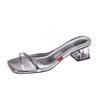 Sexy Women Slippers Slides Square High Heels Shoes Woman Mules Peep Toe Bling Shine Crystal Platform Slippers Zapatillas Mujer