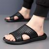 Klasické černé letní pohodlné tkané kožené žabky módní korejská verze plážové boty s klipsnou špičkou pantofle sada pantoflí