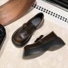 Black round head high-end small leather shoes women's spring 2025 new muffin shoes platform sweet cool single shoes loafers