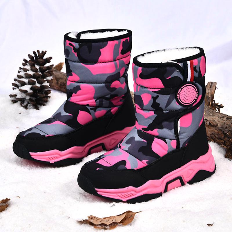 Children's medium tube snow boots winter boys and girls velvet thermal cotton shoes medium and older children's high-top camouflage cotton children's