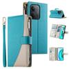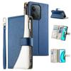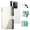 Peněženkové pouzdro na zip pro Xiaomi Redmi 15C 5G (EU) (173 mm)/15C 4G (EU) (173 mm) Kožený vyklápěcí kryt na telefon s barevným prošíváním a popruhy