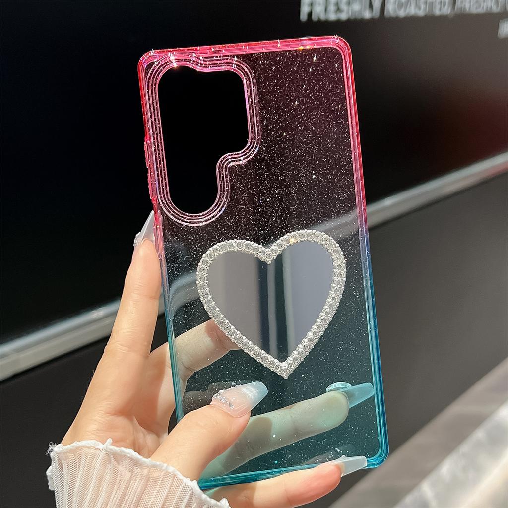 For Samsung Galaxy S25 Ultra Case Glitter Dual Color PC+TPU Clear Phone Cover with Heart-Shape Mirror