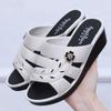 2024 Summer Women's Slippers PVC Openwork Slippers Middle-aged Mom Shoes Leisure Sandals Fashion Platform Wedge Heels Slippers