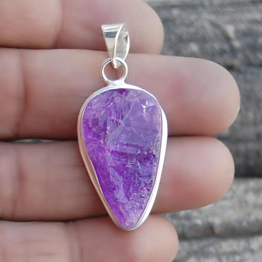 Rough Purple Amethyst 925 Sterling Silver Pendant (28 x 18 mm)