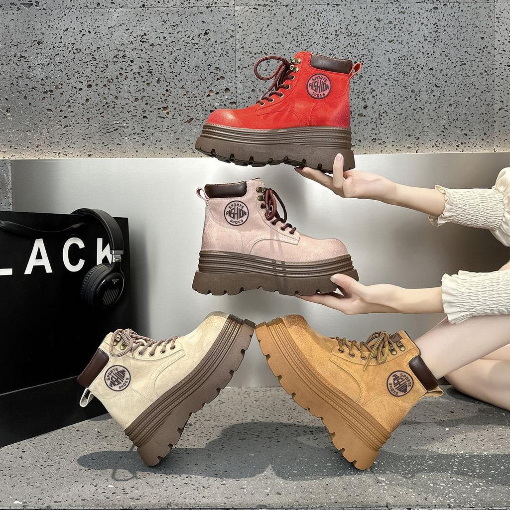 Leather platform Martin boots women's 2025 new autumn and winter retro British style big yellow boots short boots versatile lace-up single boots