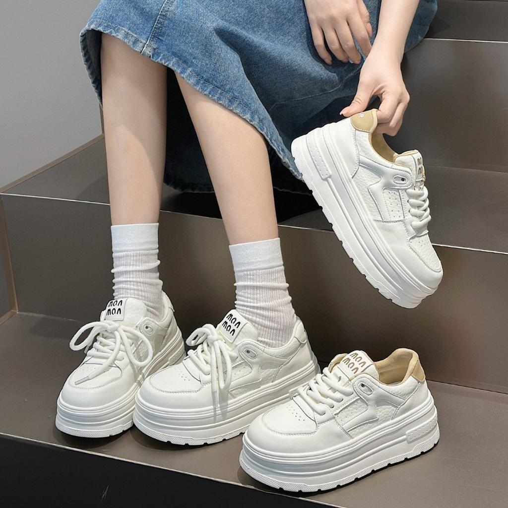 Internet celebrity Korean white shoes women's 2025 summer new round head platform versatile lace-up niche casual sports shoes