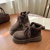 2025 autumn new leather platform heightening Martin boots British style lace-up big head retro cool tooling shoes