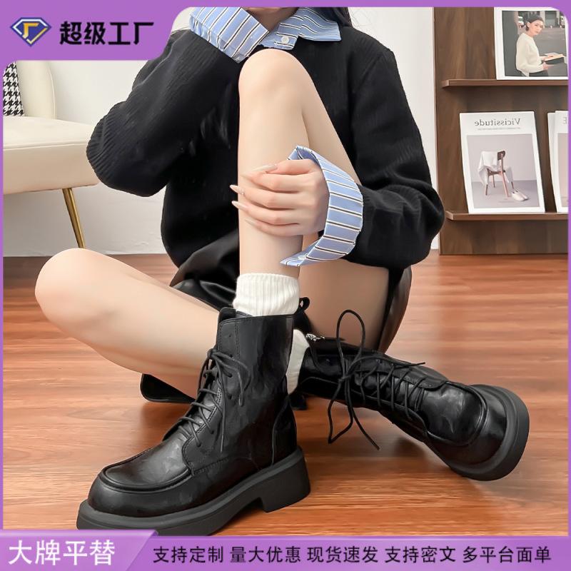 Grape mother winter new thick-soled Martin boots women wear high-end British style retro thick-soled short boots children