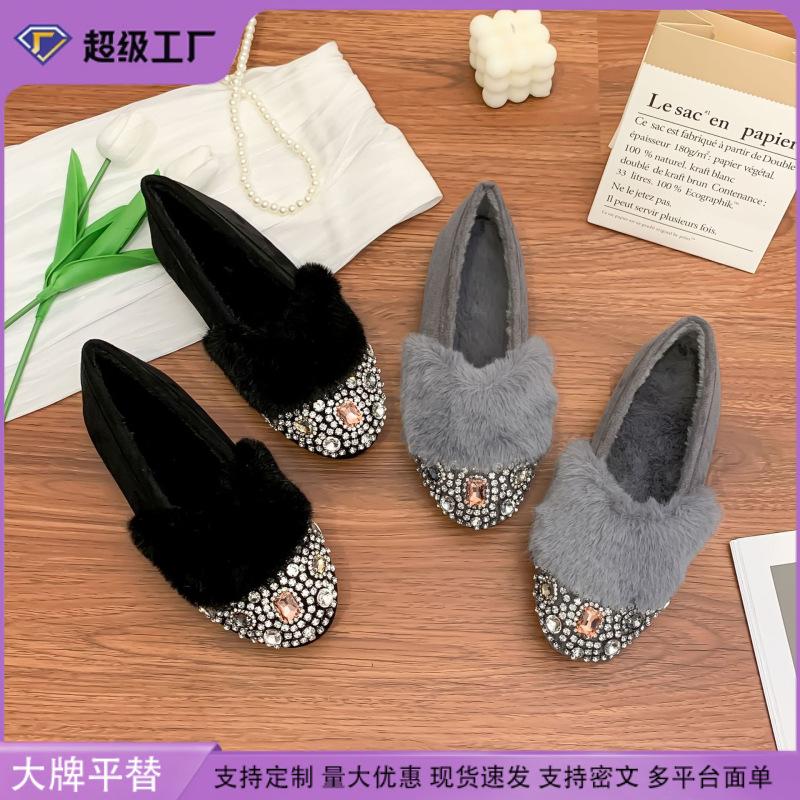 2025 winter new Mao Mao shoes women's shiny diamond platform cotton shoes women wear high-end thick velvet shoes children