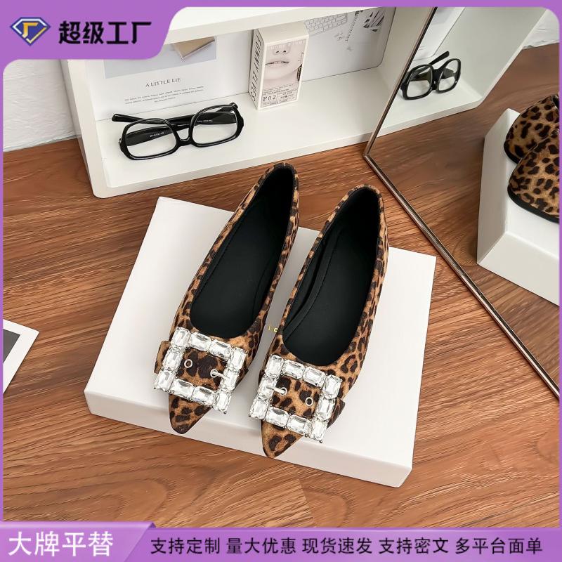 Single shoes 2025 spring women's soft soles are not tired of feet French flat-soled pointed shoes temperament rhinestone shallow mouth work shoes
