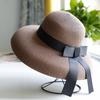 Vintage Hepburn Black Straw Hat Sun Hat Sunscreen Resort Beach Hat Women's Summer Big Eaves Sun Hat