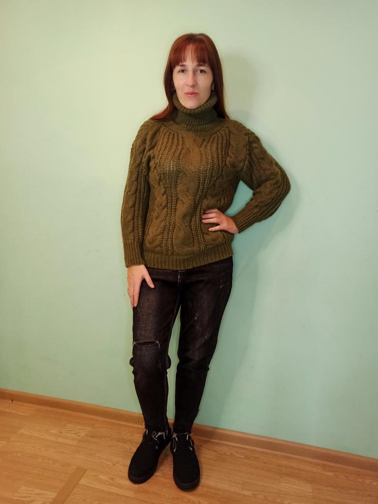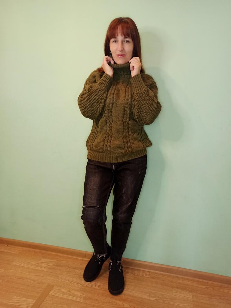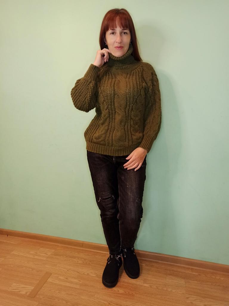 Dámský pletený svetr Pět barev na výběr Velikost od S do XXXL Pro parametry: 164 cm, 90 - 75 - 95 cm velikost M seděla dobře Pletenina je kvalitní, úhledná. Vysoký výstřih, dobře drží tvar. Svetr zdobí vpředu a na rukávech svislé copánky.. Zadní díl hladká vazba. Spodní okraj svetru a rukávů je pletený žebrovým vzorem. Svetr je na dotek příjemný, teplý. Rozhodně doporučuji koupit.
