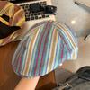 Retro color matching striped forward hat women's autumn and winter casual versatile face small reverse wearing duck tongue beret