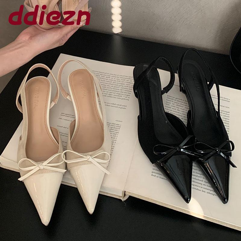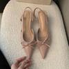 Fashion Fashion Butterfly-Knot Footwear Female Low Heel Sandals Shoes For Women 2025 New Pointed Toe Ladies Heeled Sandals Slides Shoes
