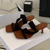 Fashion Fashion Square Toe Ladies Thin Heels Sandals Slides Shoes Summer Spring Elegant Women Heeled Sandals Shoes Female Footwear