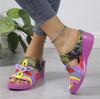 Fashion Wedge Slippers Colorblock Tribal Floral Pattern New Women's Platform Slides Tribal Floral Print Sandals Women Ethnic Shoes