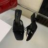 Fashion Fashion Butterfly-Knot Women Thin Heels Pumps Shoes Mesh Footwear Square Toe Ladies Heeled Shoes Female Slides Sandals Pumps