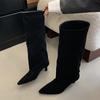 Fashion 2024 autumn and winter new style simple temperament bottom heel pointed high boots comfortable solid color wide boots