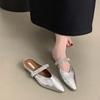 Fashion New Hot Baotou Half Slippers Female Summer Luxury Designer Pointed Rhinestone Temperament Girls Small Height Wedge Sandals