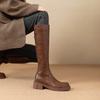Fashion Middle Heel Leather Round Toe Long Boots for Women Autumn Winter Chic and Elegant Fashion 2025 Sale Knee High Shaft Shoes Woman