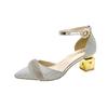 Fashion Pointed Toe Woman Shoes Pearl with Medium Heels Diamond Sandals for Women Silver New Breathable Fashion Shoe on Sale Vip Korea