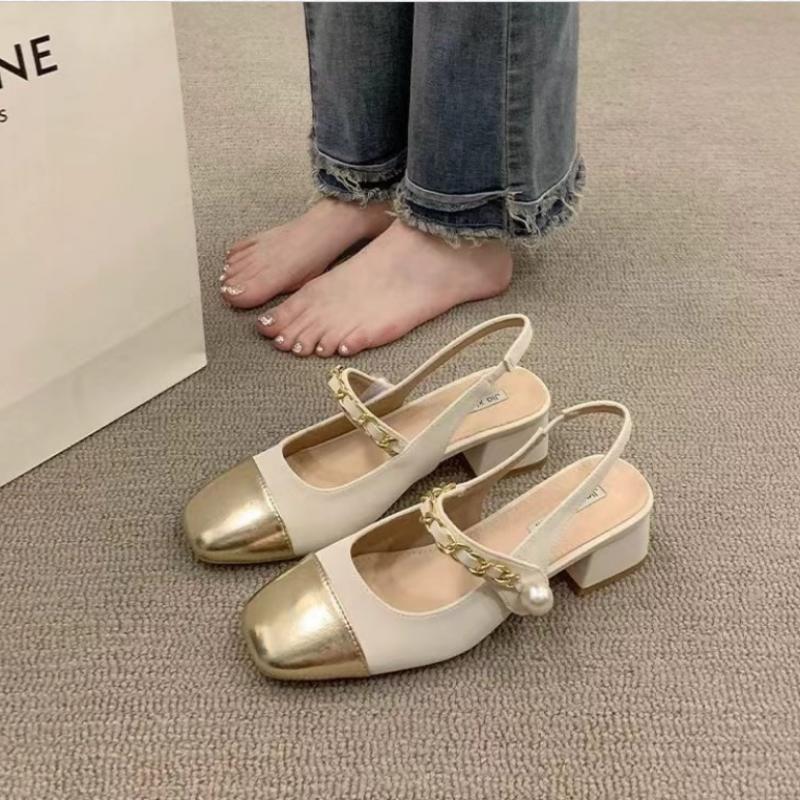 Fashion Women's Elegant High Heel Sandals New 2024 Spring Summer Fashionable Thick Middle Heel Mary Jane Shoes Flat French Style