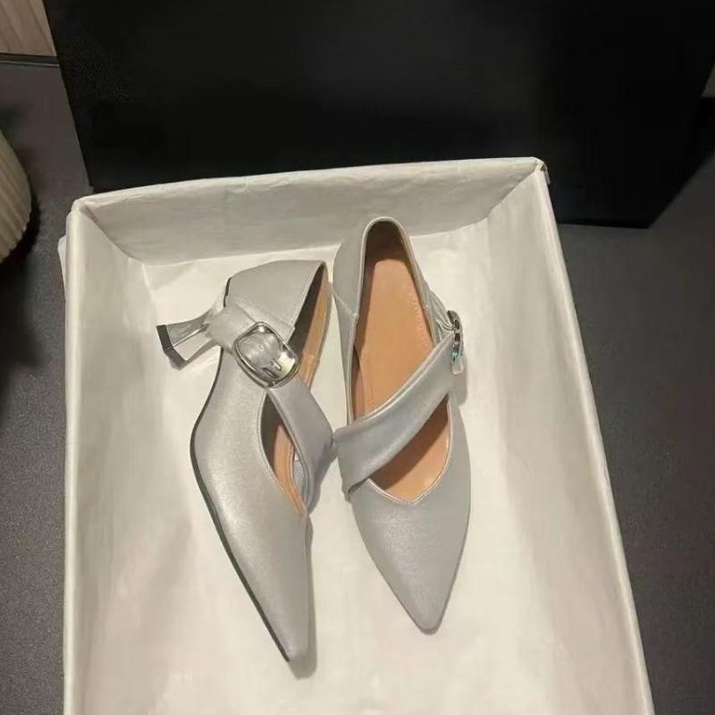 Fashion 2025 Women's Fashion Slim Heel Shoes Autumn New Pointed Head Shallow Mouth Metal Buckle A Word with Temperament Low Top Shoes