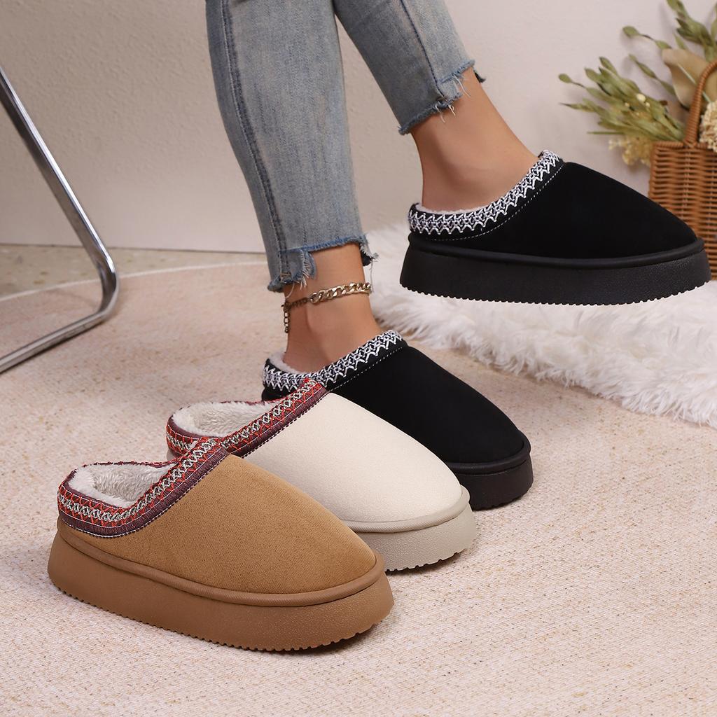 Fashion Women Fur Slippers Designer Winter Snow Boots Thick-soled Dress Shoes Short Plush Comfortable Women Cotton Shoes Slides Women