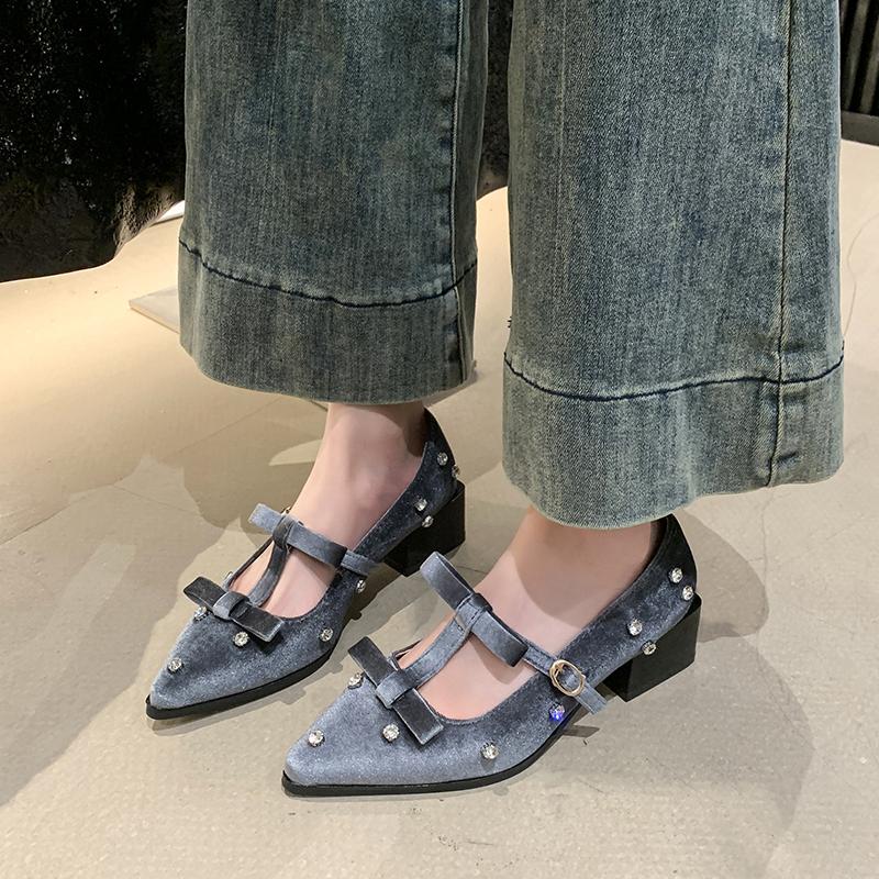 Fashion Pointed Toe Crystal Women Chunky Shoes Elegant High Heels Summer Sandals 2025 New Fashion Dress Party Buckle Woman Pumps Zapatos