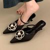 Fashion 2025 New Solid Color Flower Baobao Head Half Drag Shoes Summer New Temperament Pointed Head Fashion Comfortable Casual Shoes