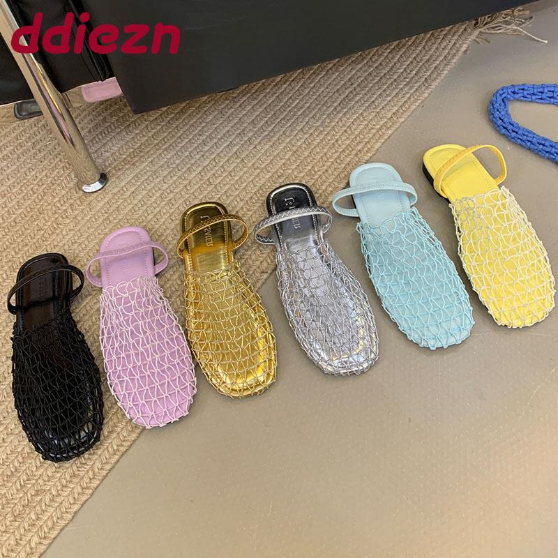 Fashion Summer Beach Ladies Flats Slippers Sandals Shoes Round Toe Fashion Mesh Female Flats Slides Slippers Shoes For Women Mules