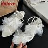 Fashion Fashion Flower Women High Heels Pumps Shoes Female Round Toe Footwear Ankle Strap Party Wedding Ladies Thin Heels Shoes