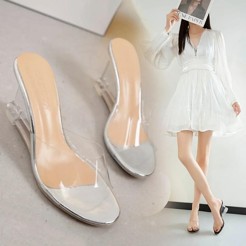 Fashion 2025Shoes for Women Summer New Fashion Slip-on High Heels Crystal Wedge Female Peep Toe Casual Slippers